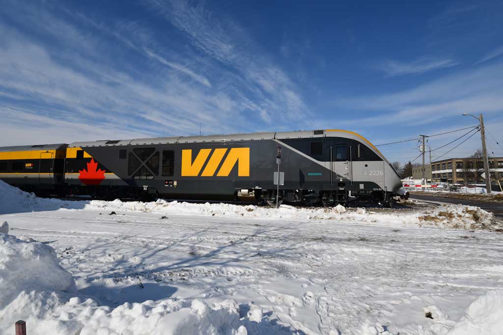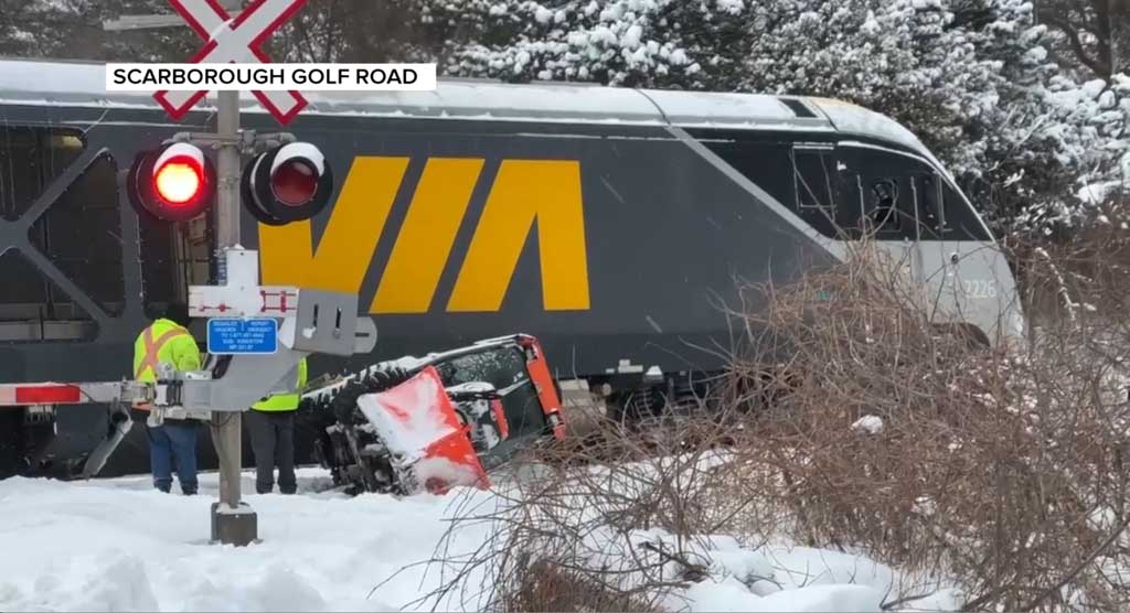 VIA 2226 leading collided with a sidewalk snowplow in
