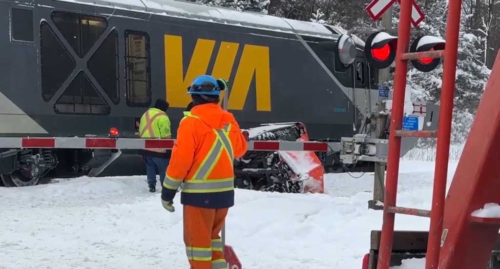 VIA 2226 leading collided with a sidewalk snowplow in